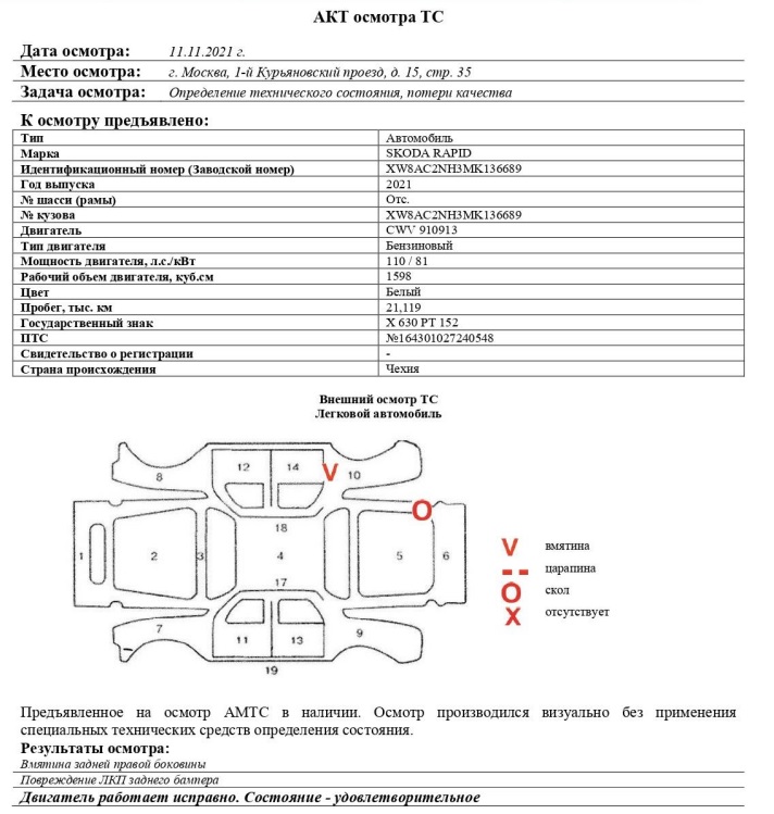 Легковой автомобиль Skoda Rapid, 2021 года выпуска, VIN: XW8AC2NH3MK136689, принадлежащего Доверителю на праве собственности, что подтверждается Договором купли-продажи № ОВ/CM-123801-07-01-С-01 от 31.05.21 г.