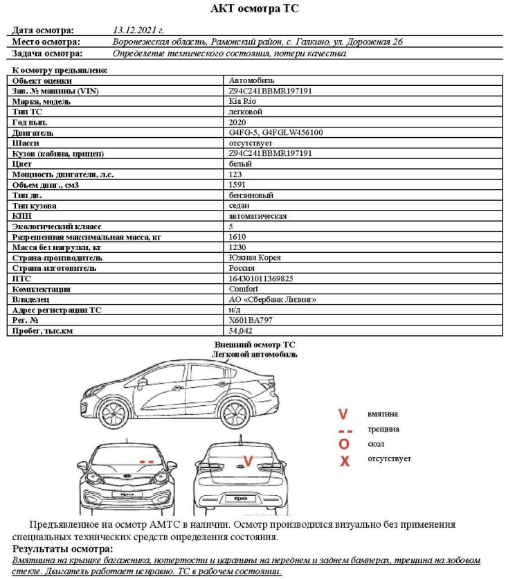 Легковой автомобиль KIA RIO, 2020 г.в., VIN: Z94C241BBMR197191, принадлежащего Доверителю на праве собственности, что подтверждается Договором купли-продажи № ОВ/Ф-100840-04-01-С-01 от 07.10.20 г. |