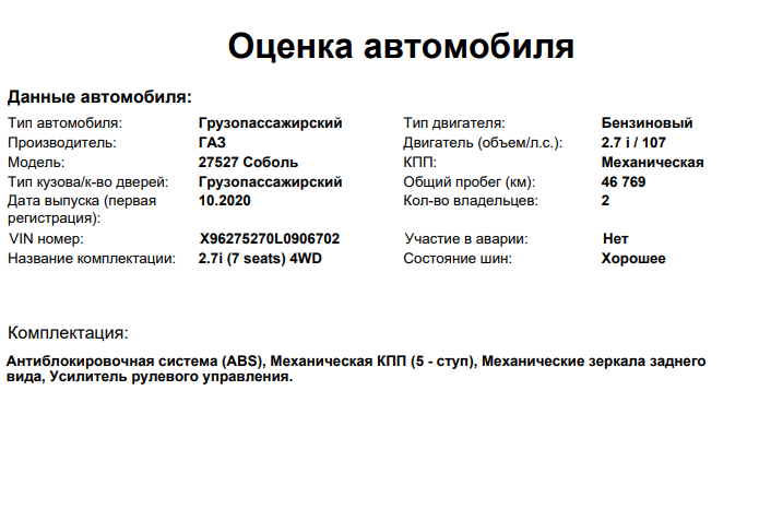 Соболь ГАЗ-27527, 2020 года выпуска, VIN: X96275270L0906702, принадлежащего Доверителю на праве собственности, что подтверждается Договором купли-продажи № 000000819 от 23.10.2020 г.