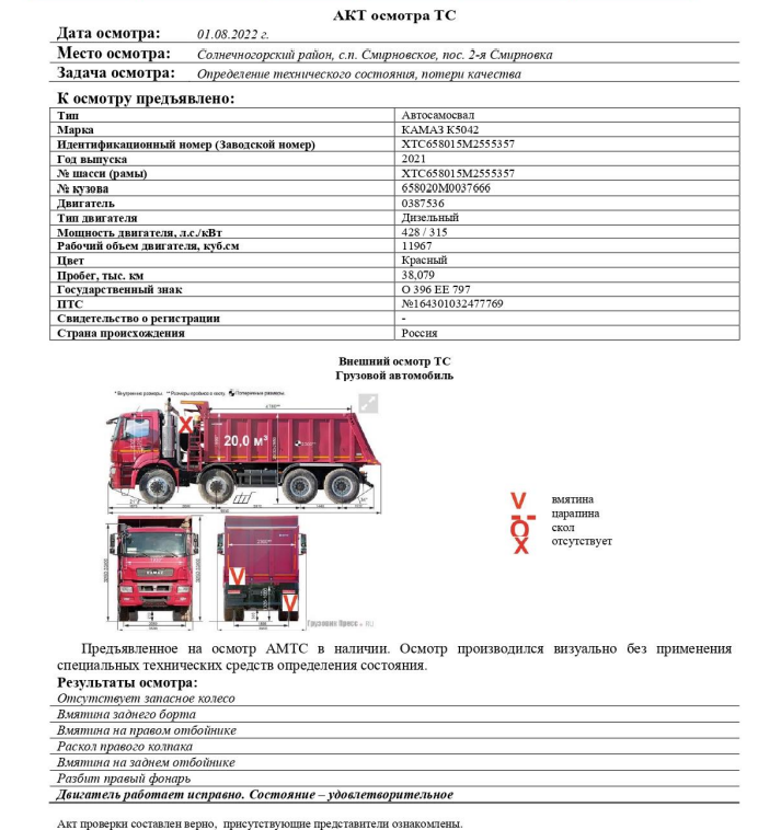 Автосамосвал КАМАЗ К5042, 2021 г.в.,VIN: XTC658015M2555357, принадлежащего Доверителю на праве собственности, что подтверждается Договором купли-продажи № ОВ/Ф-126025-04-01 -С-01 от 02.09.21 г.