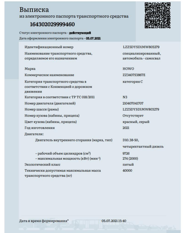 Специализированный, автомобиль-самосвал HOWO ZZ3407S3867E, 2021 года выпуска, VIN: LZZ5DYSD1MW803279. ТЗ Э262 |